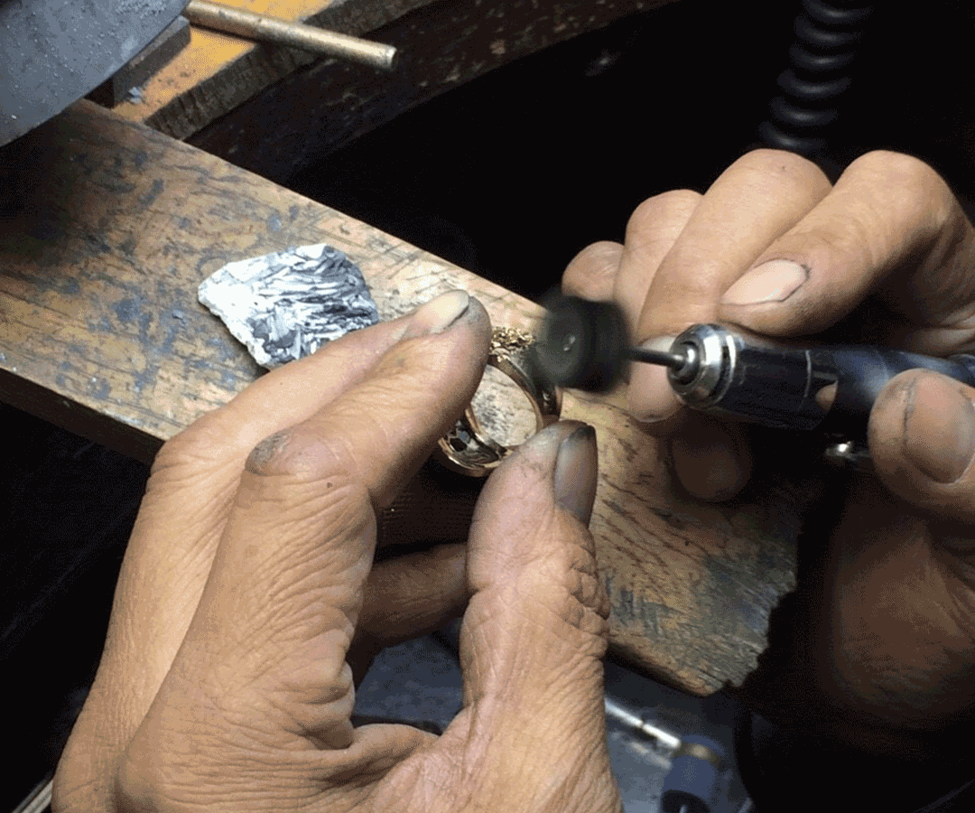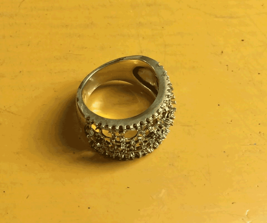 12.ロウが溶けた石膏の型に地金をいれ鋳造
