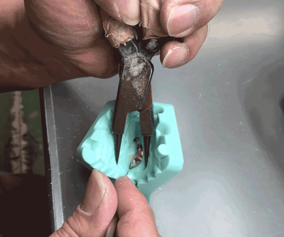 2.シルバー原型でロウ型を作るシリコンゴムを作る