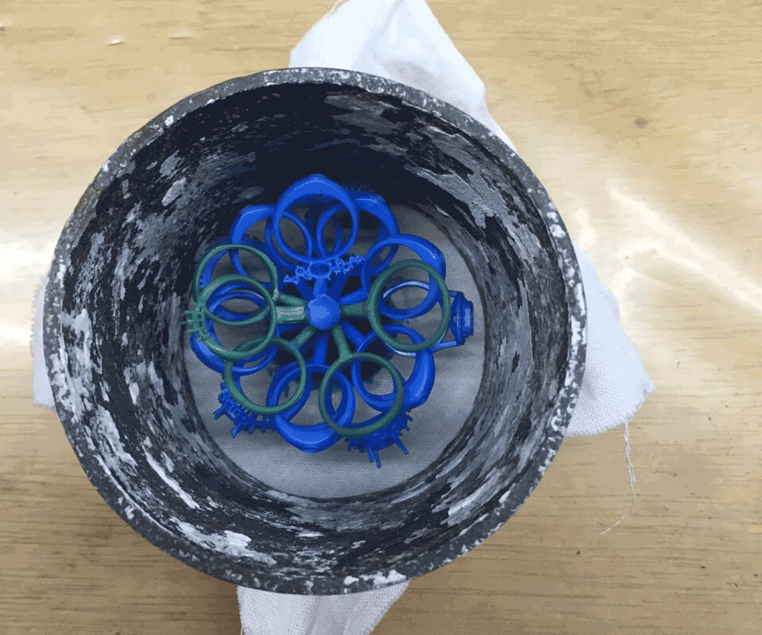 11.石膏を固めてロウ型が溶け、型ができるのを待つ