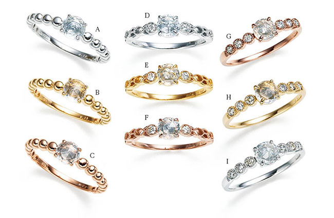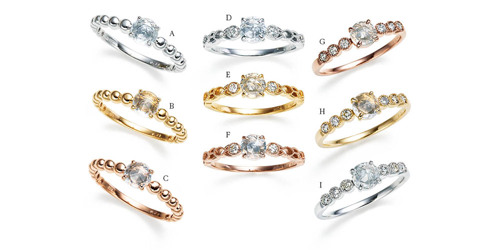 中石:ホワイトサファイア、脇石:ダイヤモンド