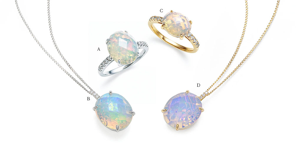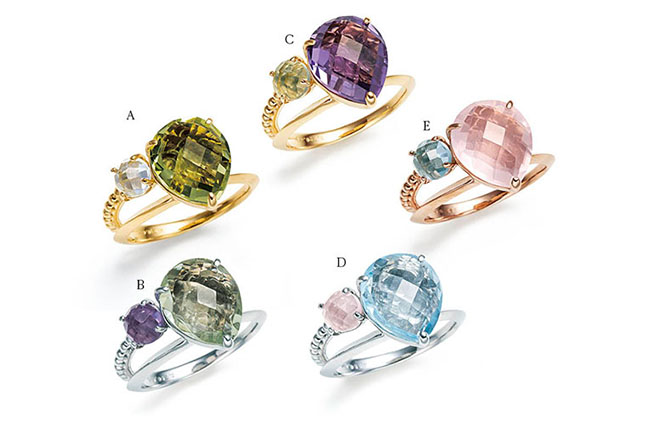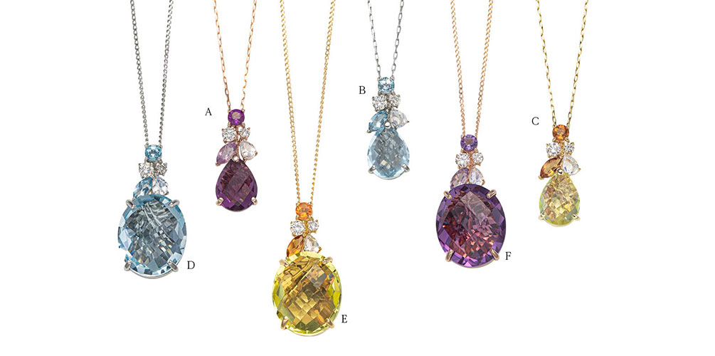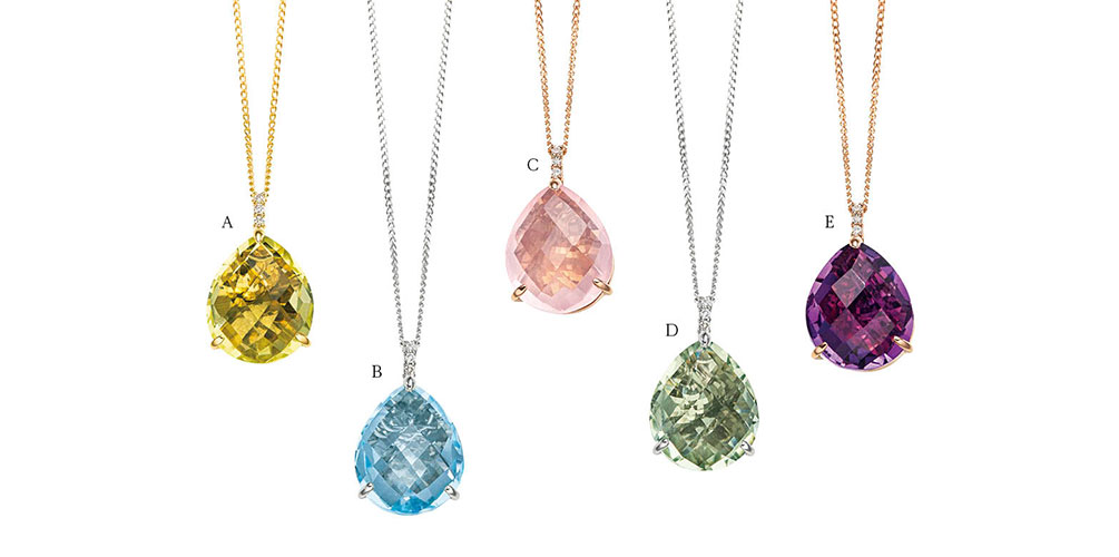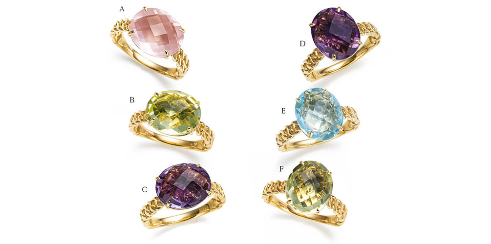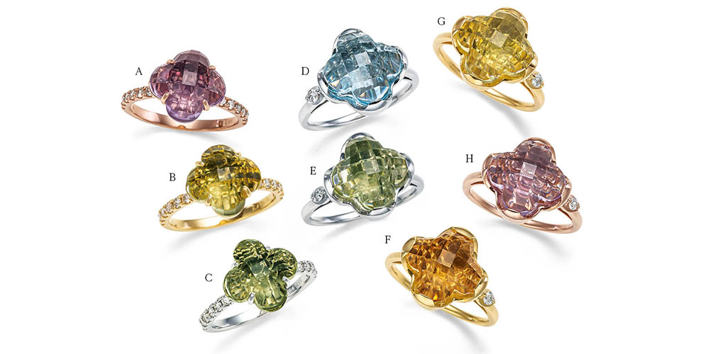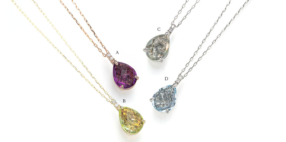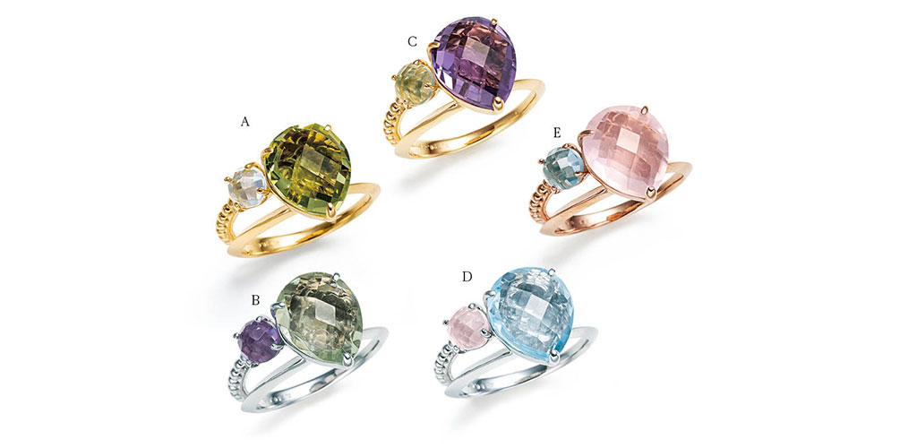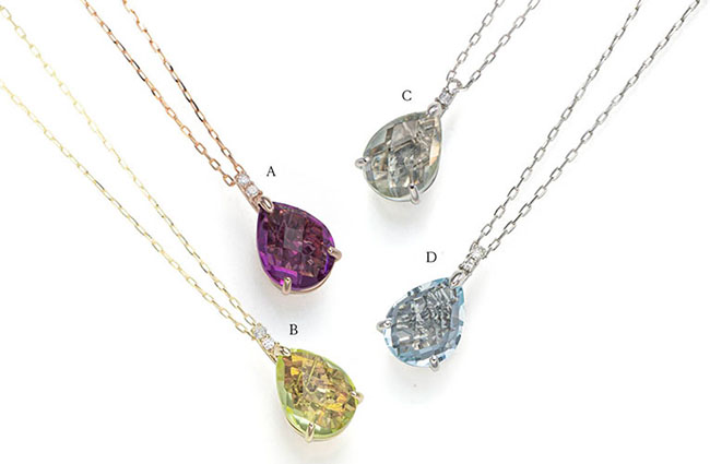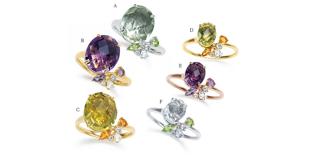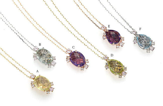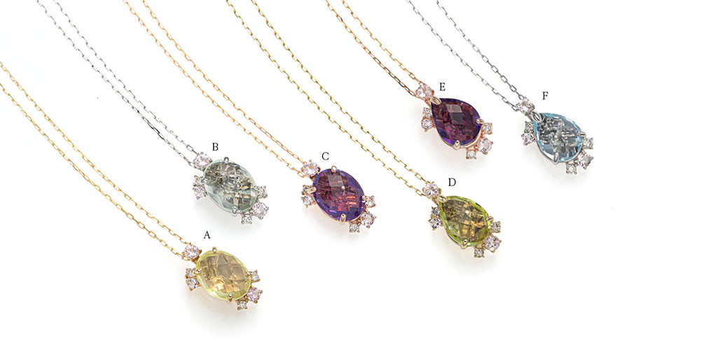中石:クォーツ、脇石:ペリドット/ムーンストーン/ダイヤモンド