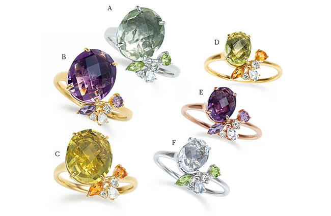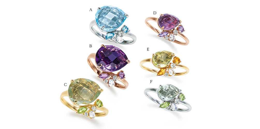 中石:レモンクォーツ、脇石:モルガナイト/ダイヤモンド