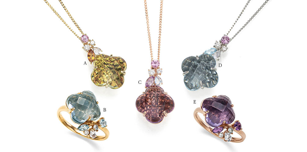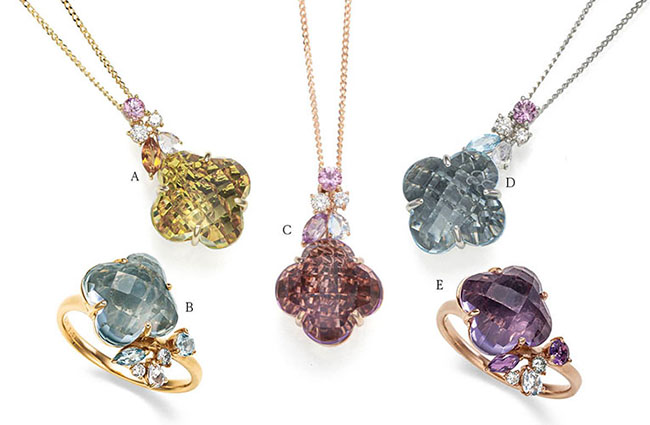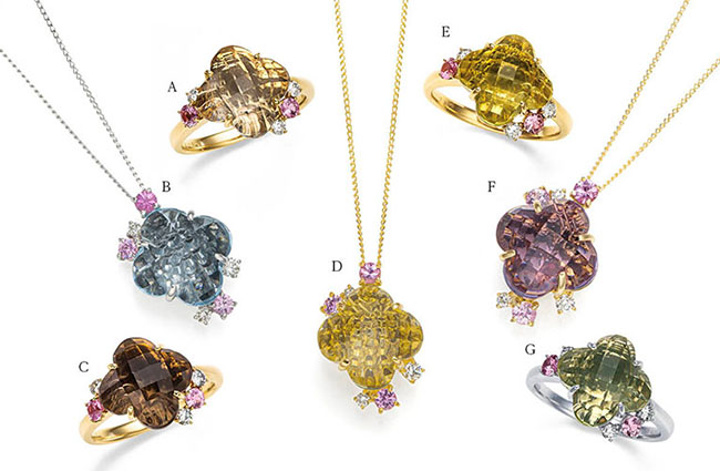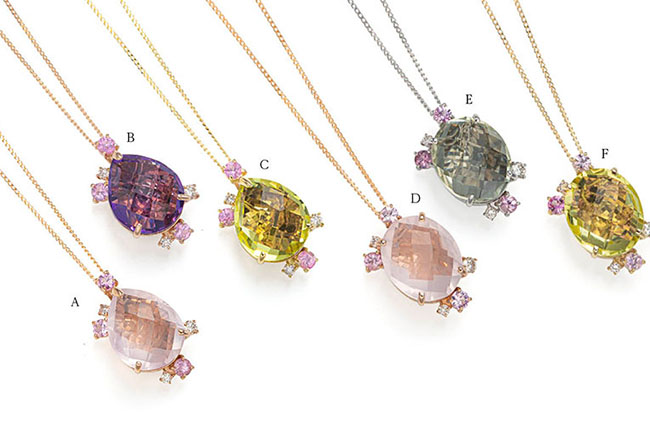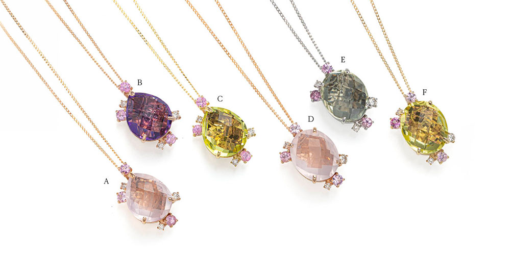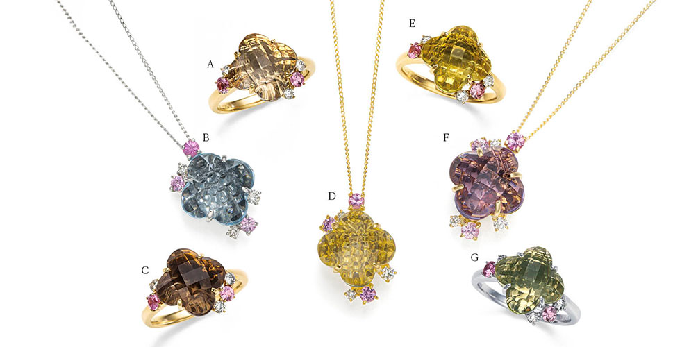 中石:レモンクォーツ、脇石:ピンクサファイア/ダイヤモンド